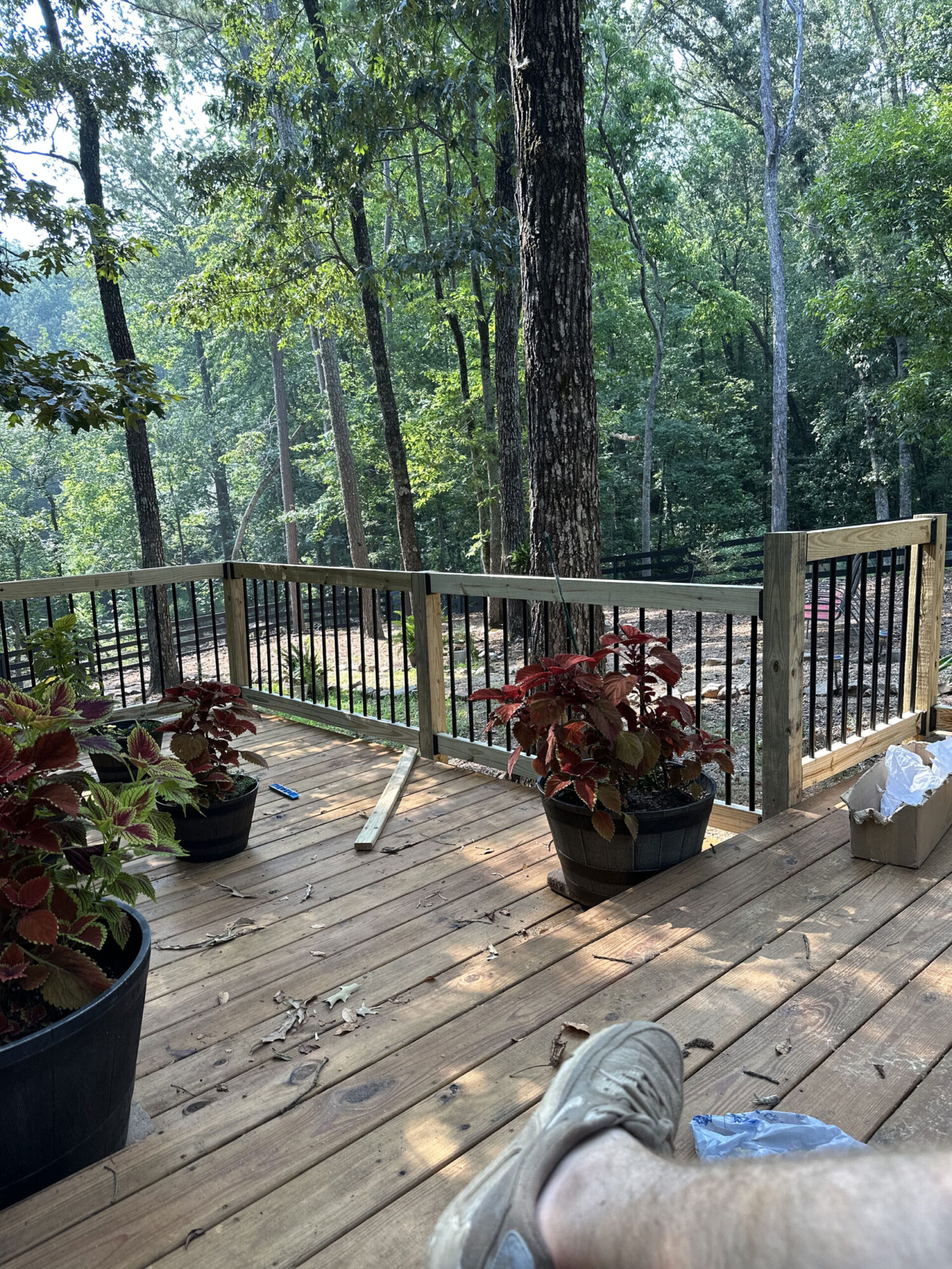 30yr old redwood deck needed to be rebuilt. Client chose Fiberon decking and Fortress aluminum railing. It’s one of our favorites!