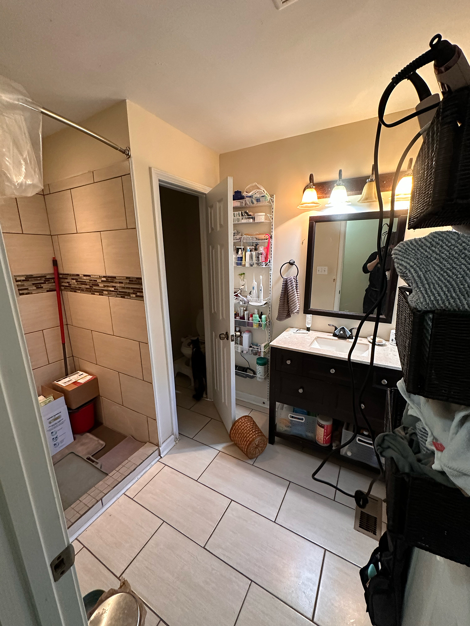 - Gutted & rebuilt the original bathroom, and extended the shower wall by deleting the adjacent bedroom closet.