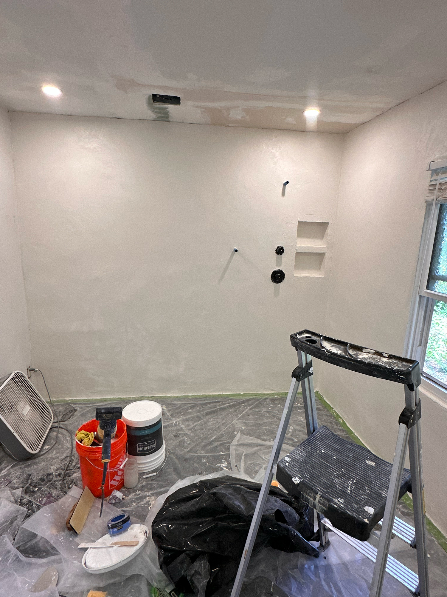 Master bath renovation. Objective: no grout lines, and minimal/organic vibe using Tadelakt Moroccan plaster. The total room size doubled to 81 ft². Original shower floor fell out during demo due to rot (thankfully the homeowner stopped using it years ago). To keep it short & sweet: